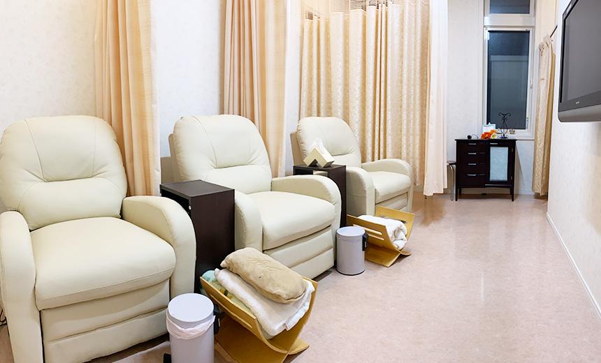 注射・点滴をご希望の方は、一般外来とは別の待合室にてお待ちください。リクライニングソファーが6台ございます。